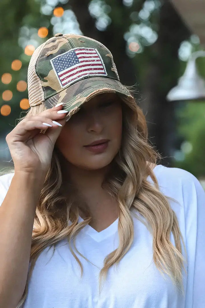 American Flag USA vintage distressed trucker cap.