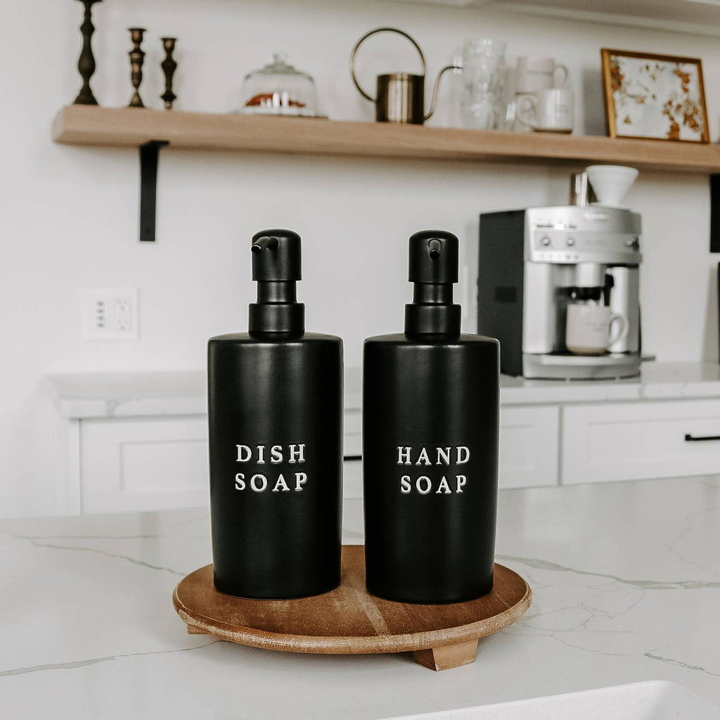 Our stylish, simple, + refillable black stoneware dispensers will elevate your kitchen, bathroom, and laundry room. We love these for how ecofriendly they are, while at the same time making your sink area functional and beautiful. Our refillable hand soap dispensers can be filled with your favorite hand soap over and over again to reduce plastic use while giving your space a fun update!