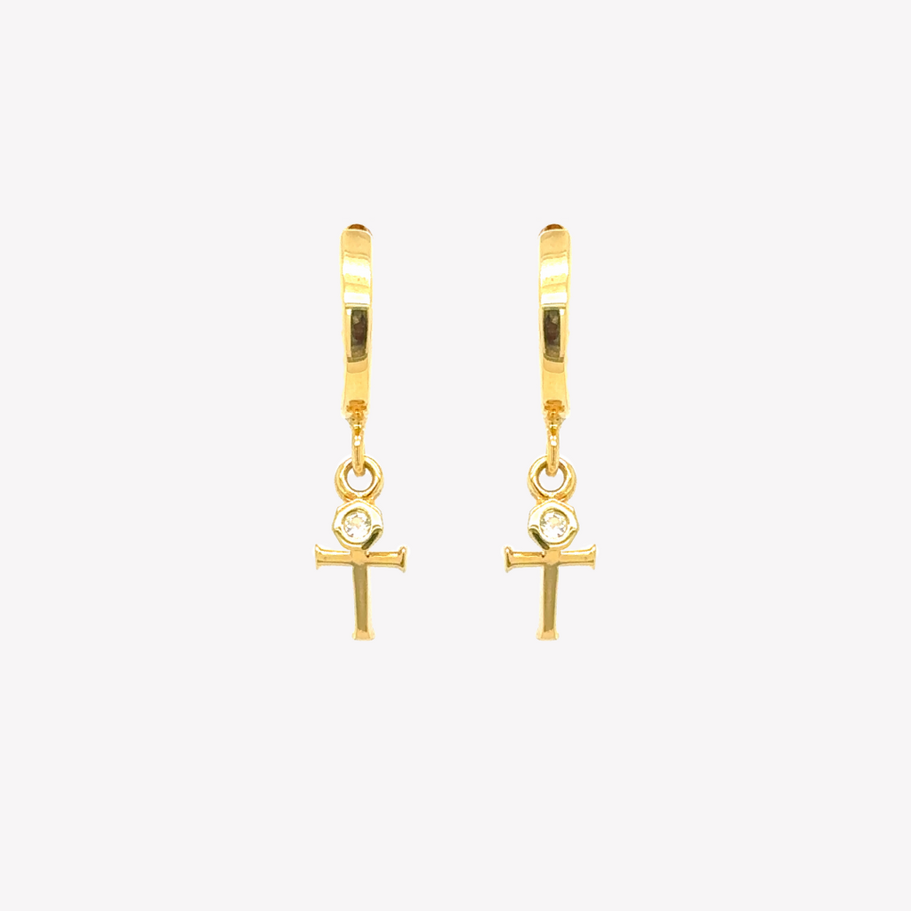 Calvary Cross Huggie Hoop Earrings